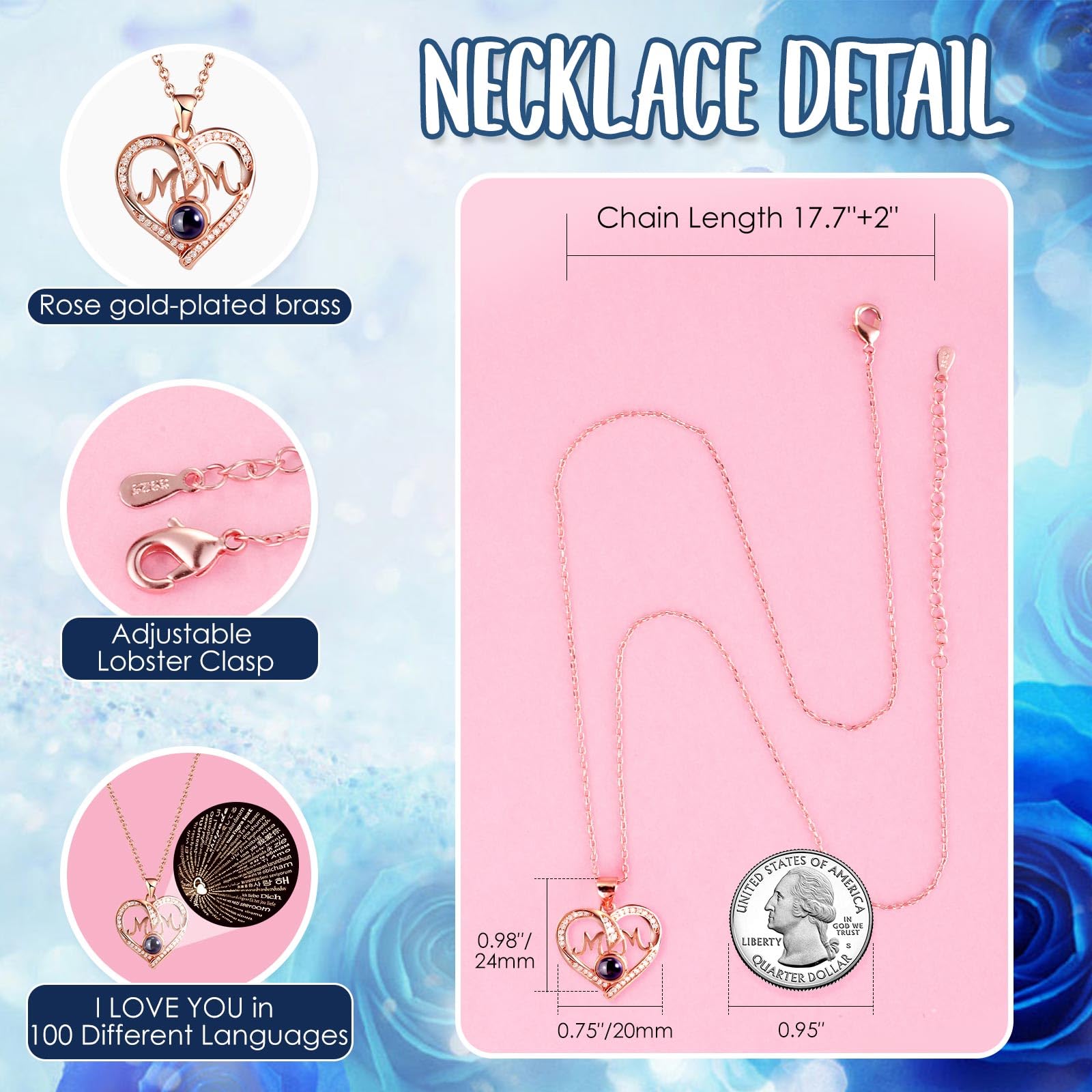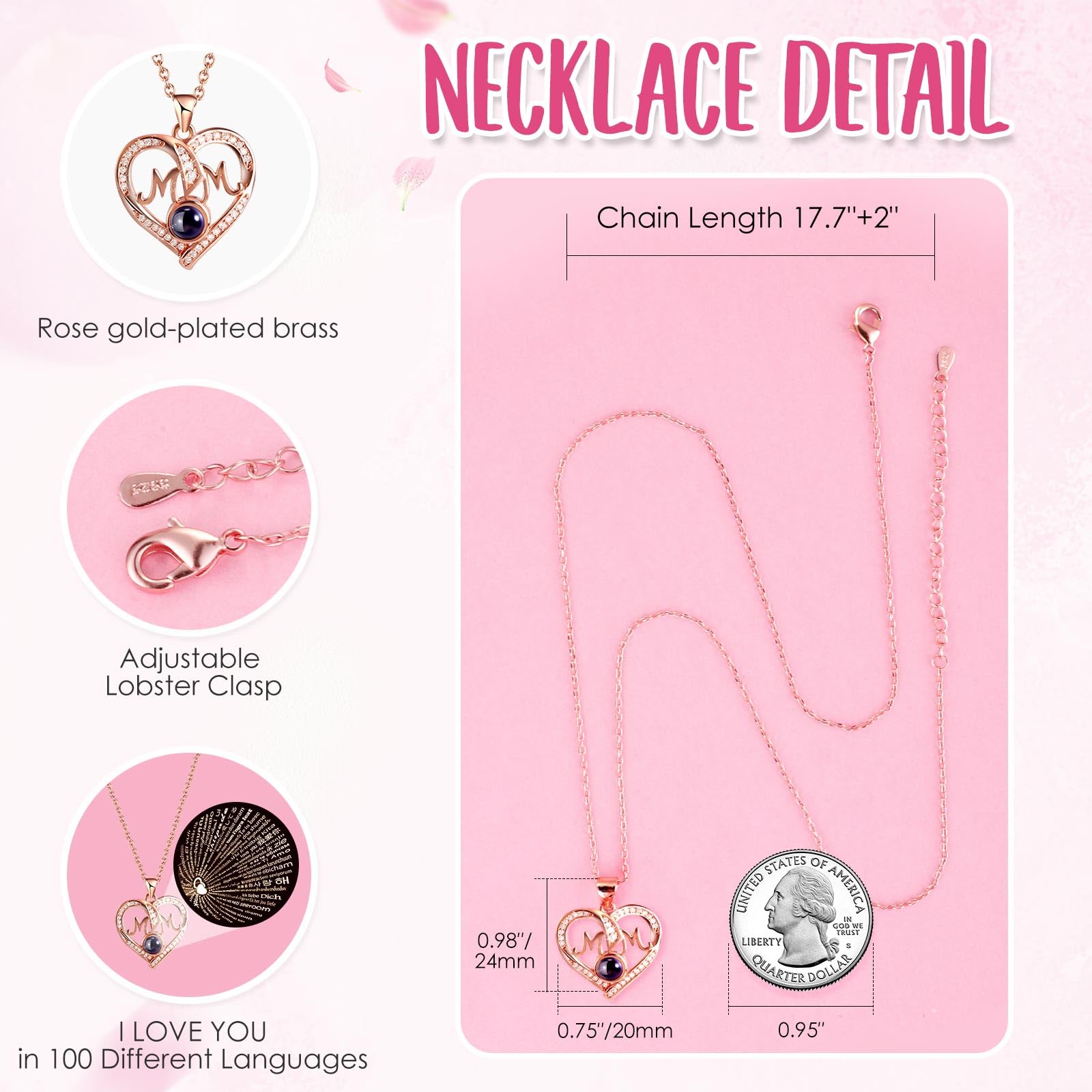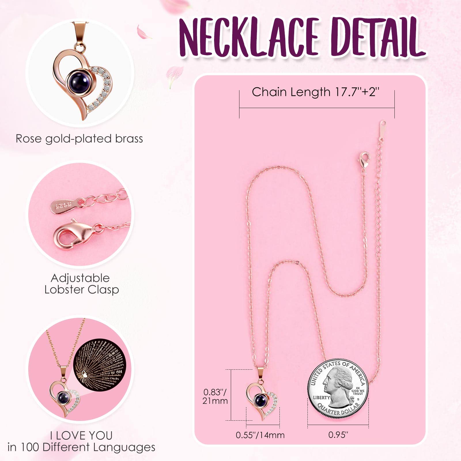 - I LOVE YOU 100 Ways Necklace: I LOVE YOU necklace in 100 Languages in Hidden inside Bottom of the jewelry box, "which means there are 100 love you ways". The pendant and chain are made of brass with rose gold plating,which are hypoallergenic and have oxidation resistance.The love necklace designed with an 18-inch chain, 2-inch extender, and a adjustable spring ring clasp.They don’t contain lead, nickel, or allergens