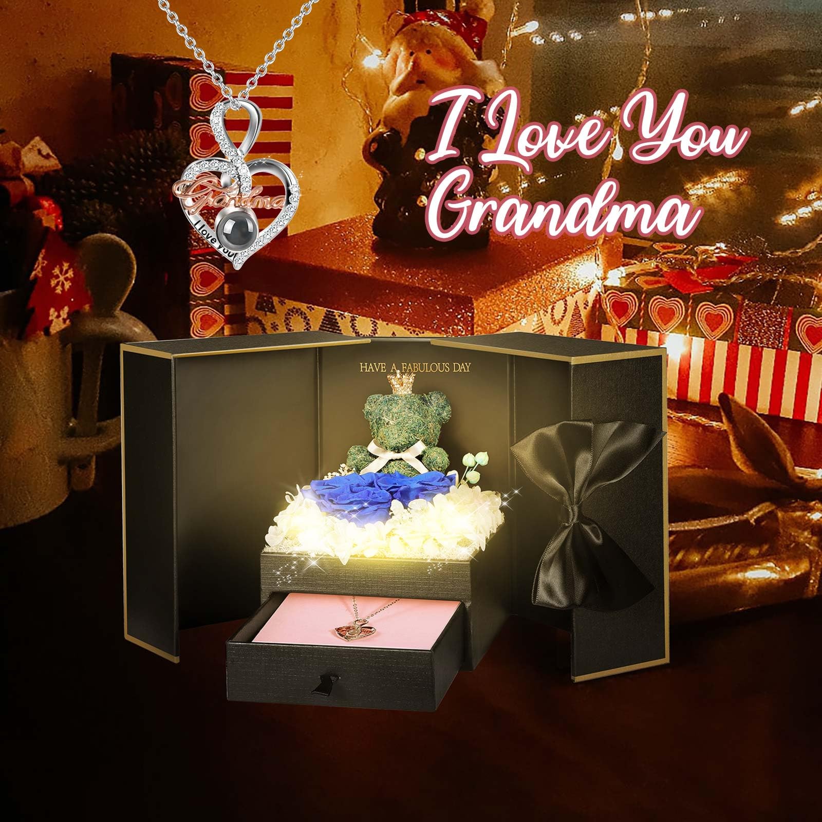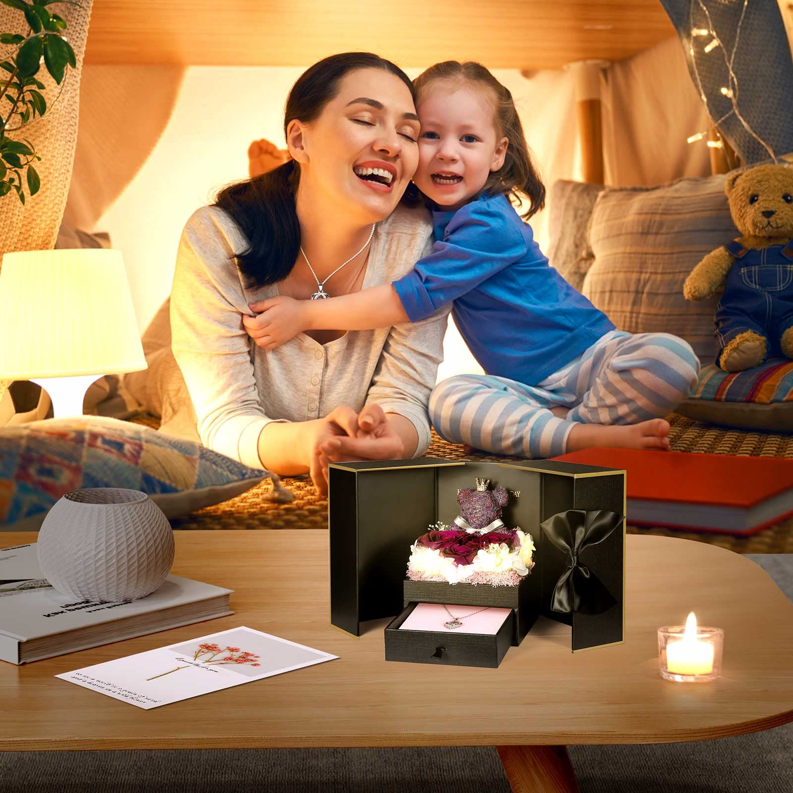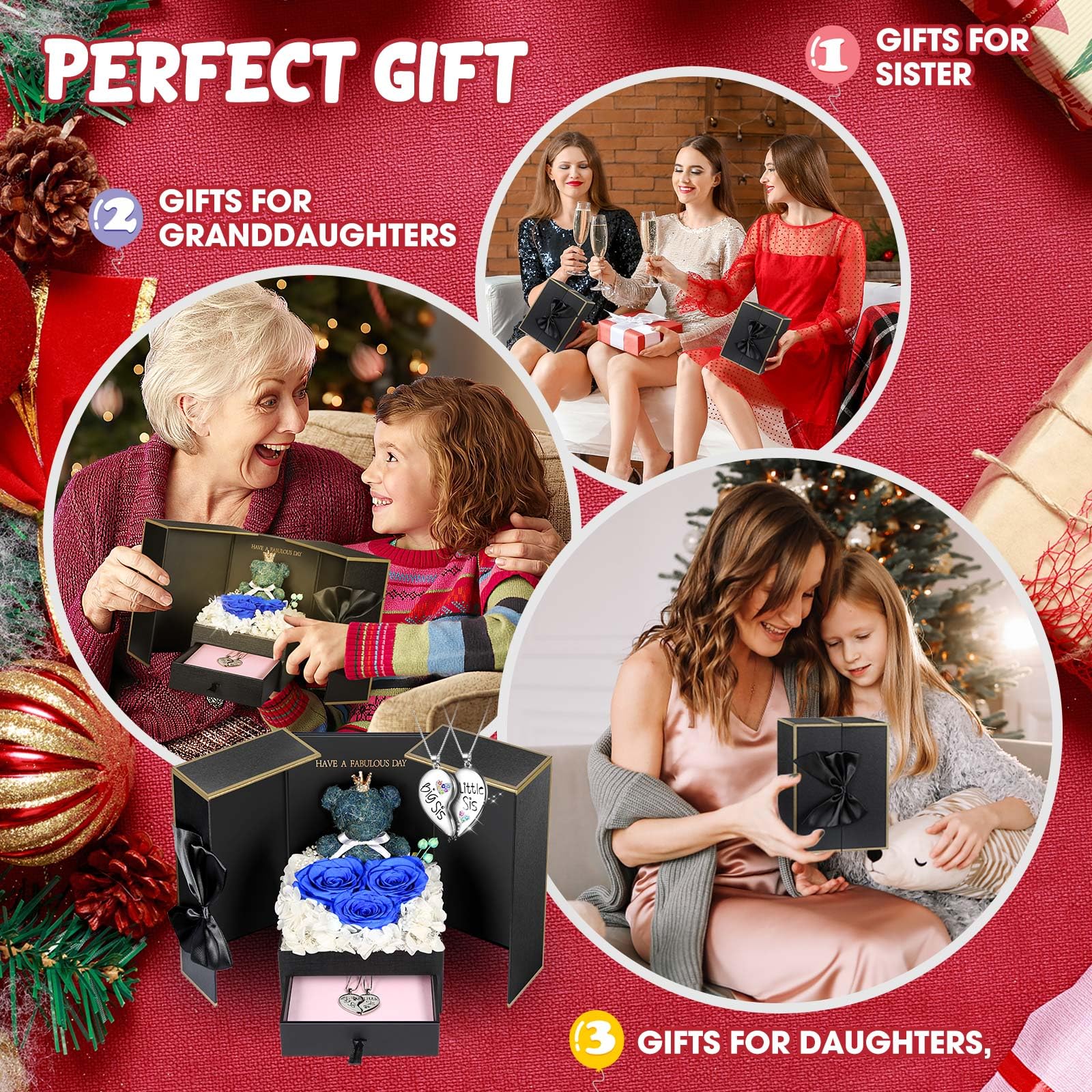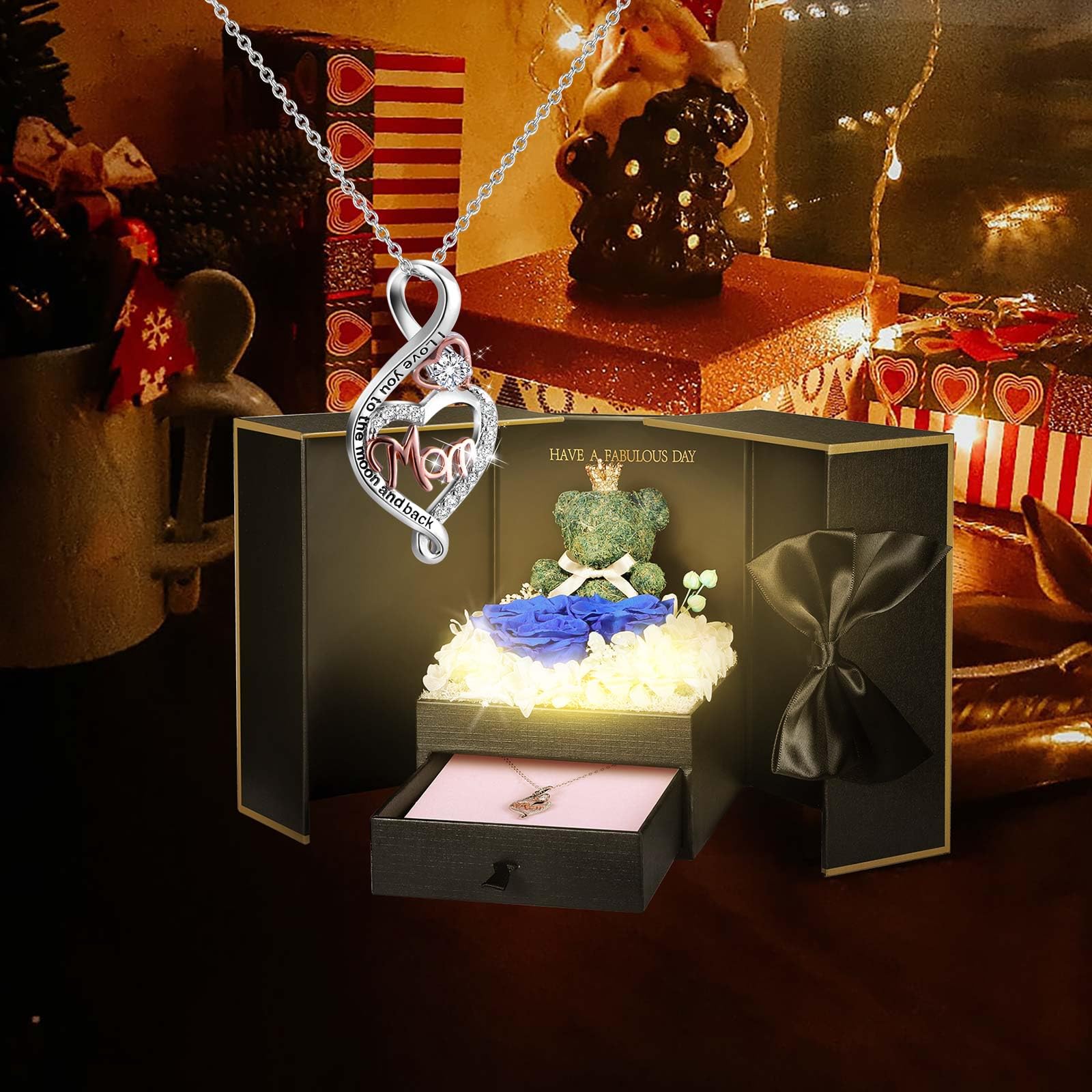 ADDWel Rose Gifts for Women Birthday Christmas - Preserved Real Roses Forever Red Flowers with I Love You in 100 Languages Necklace and Cute Moss Bear for Girlfriend Wife Mom Grandma