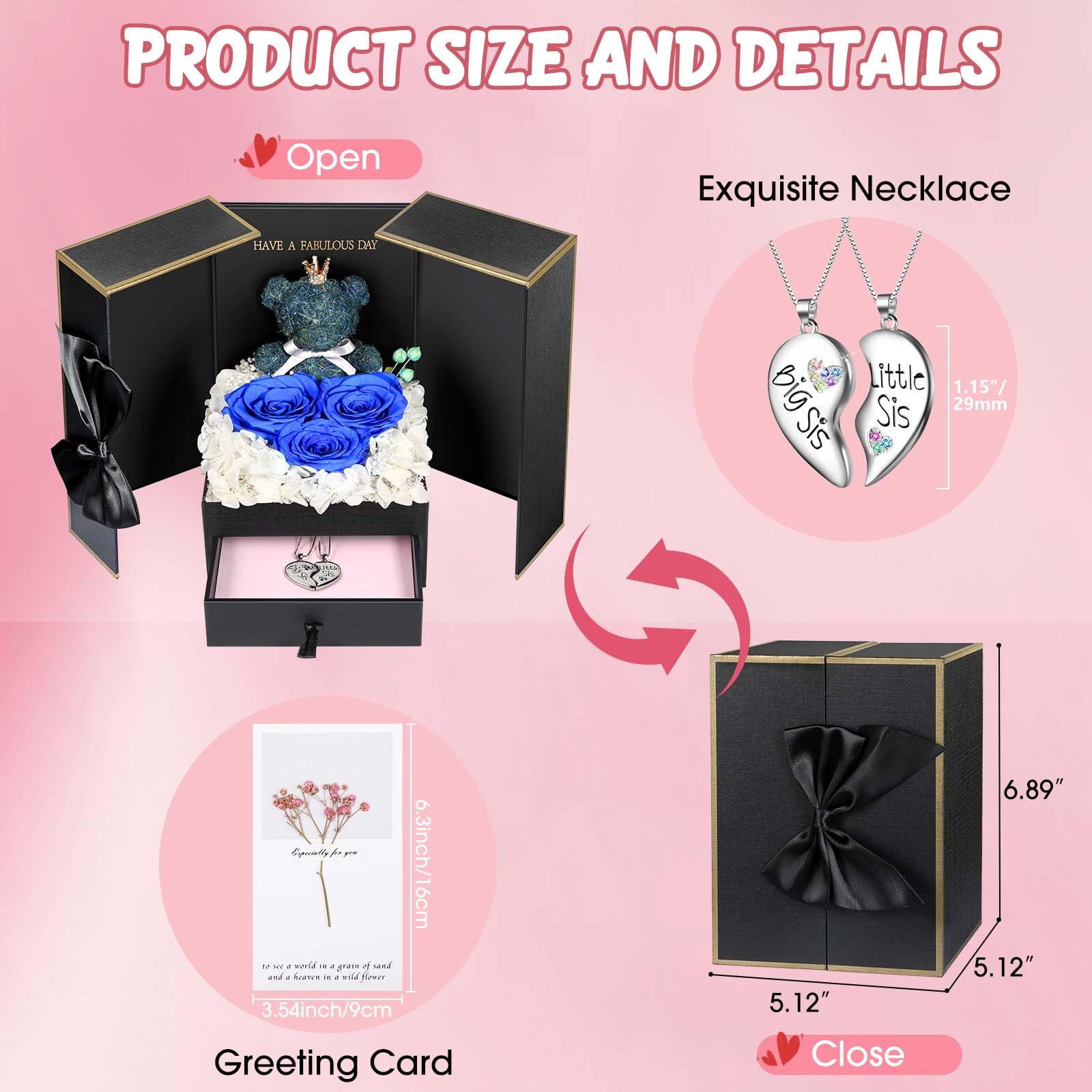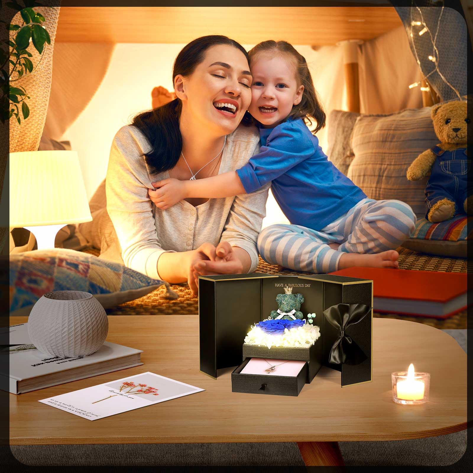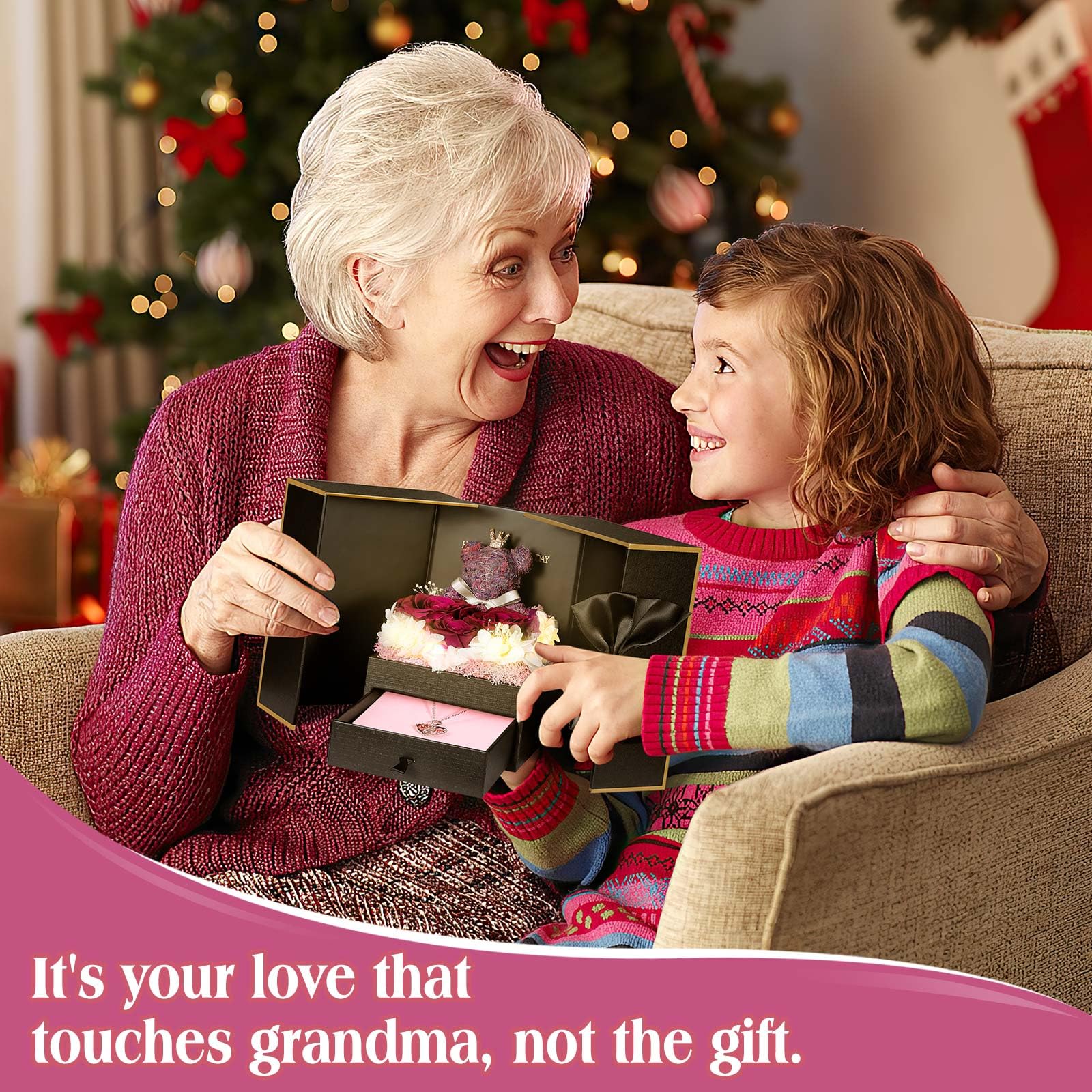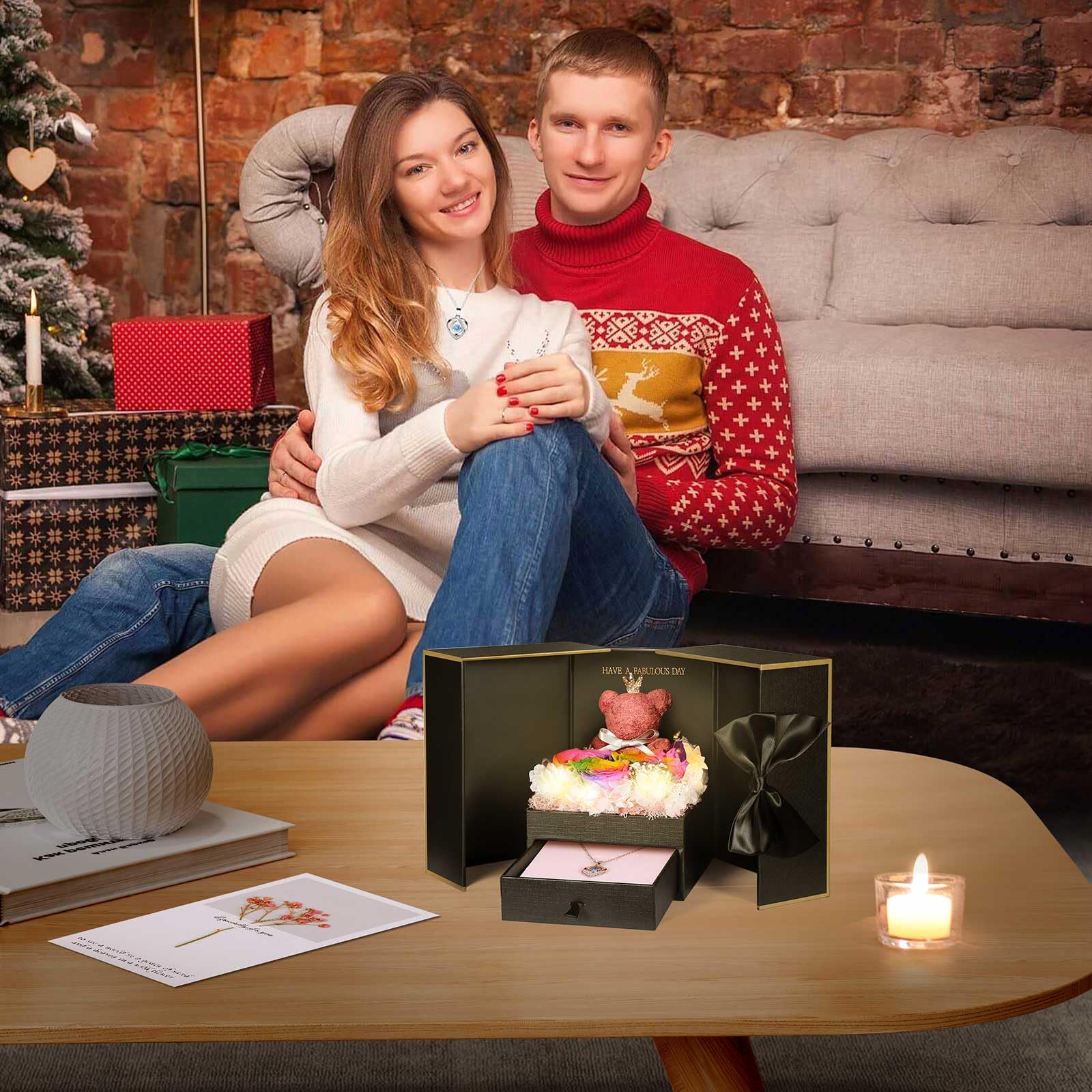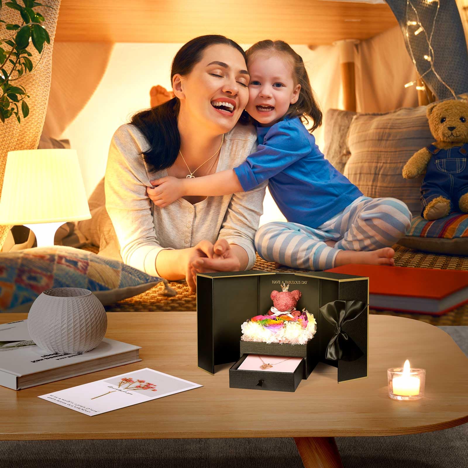 ADDWel Rose Gifts for Women Birthday Christmas - Preserved Real Roses Forever Red Flowers with I Love You in 100 Languages Necklace and Cute Moss Bear for Girlfriend Wife Mom Grandma