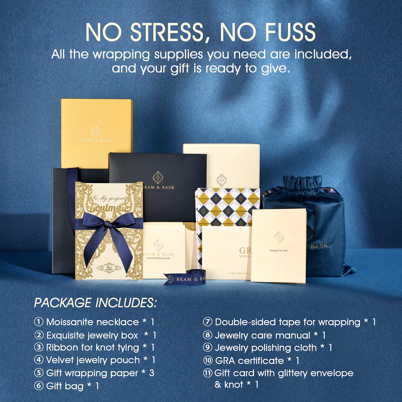 Beam & Bask Pendant Necklace for Wife or Girlfriend, Anniversary Birthday Wedding Moissanite Jewelry for Soulmate Her Women, S925 Sterling Silver