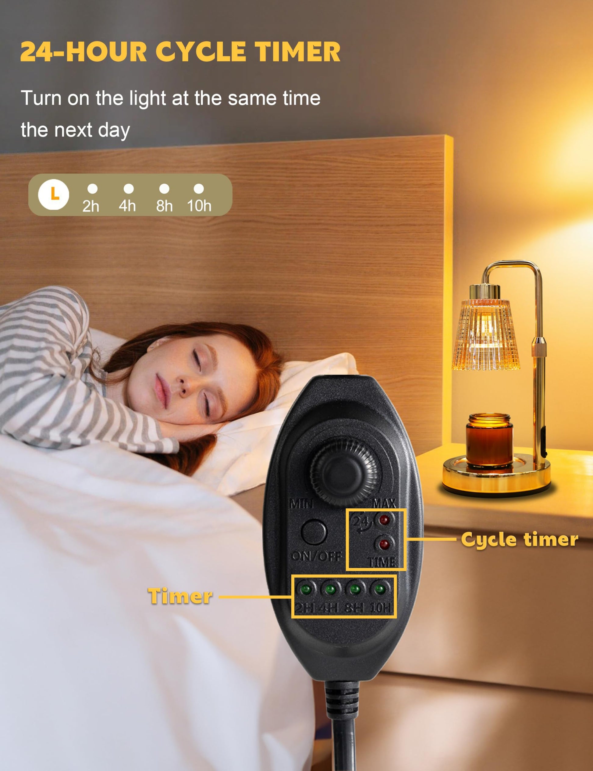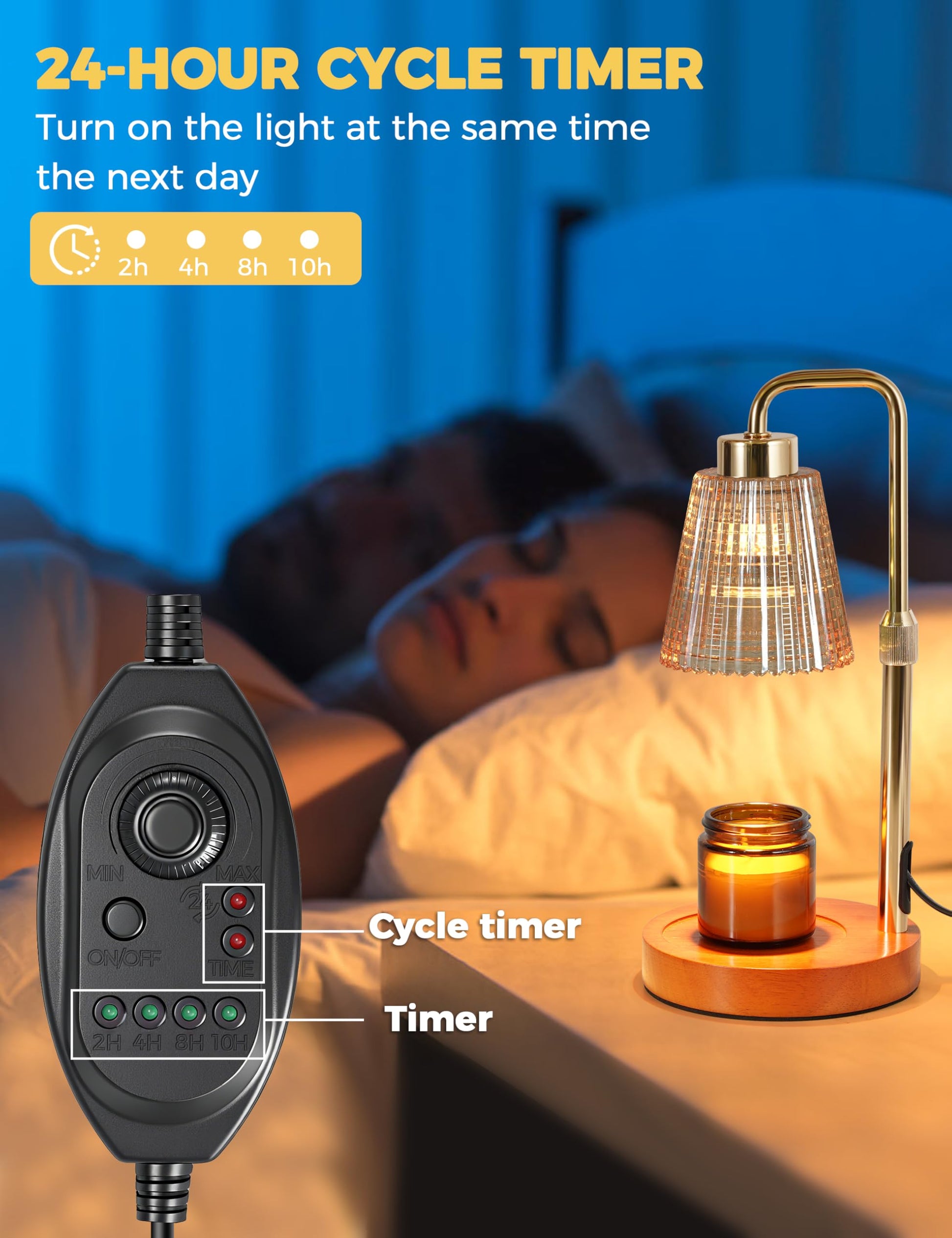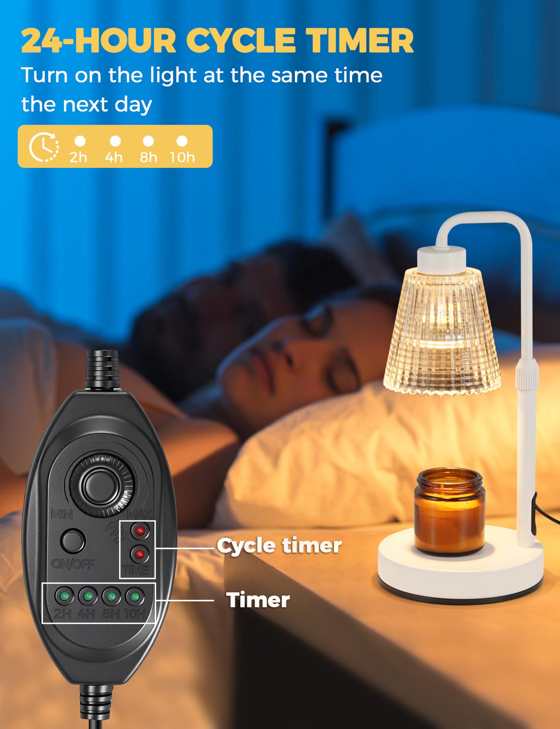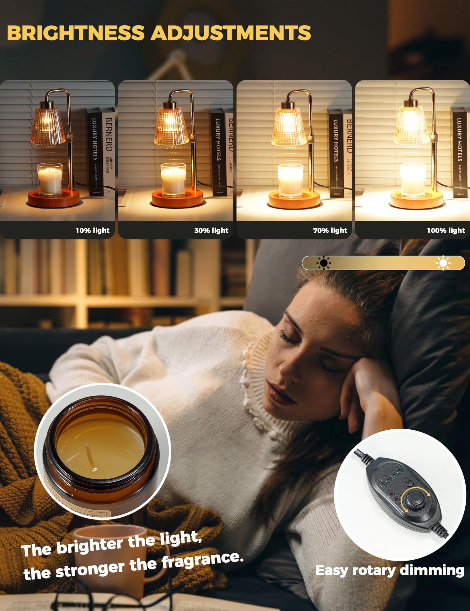 - Fully Dimmable and 12-Hour Timing Function: Enjoy complete control over the ambiance with our dimmable knob, offering unrestricted dimming for personalized melting speeds. Additionally, our Candle+Warmer+Lamp boasts a convenient timer function, ensuring a perfect atmosphere tailored to your preferences, facilitating uninterrupted sweet dreams.