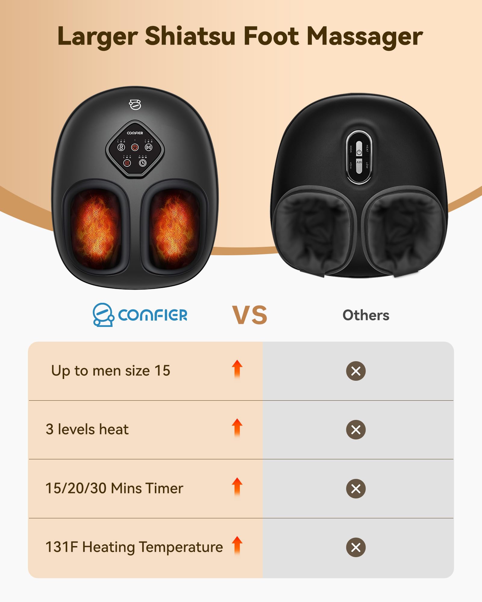 COMFIER Shiatsu Foot Massager with Heat,Vibration,Rolling Compression,FSA Eligible Feet Massager Machine for Plantar Fasciitis,Neuropathy Pain, Fits Size up to 13“,Christmas Gifts for Women,Men,HSA
