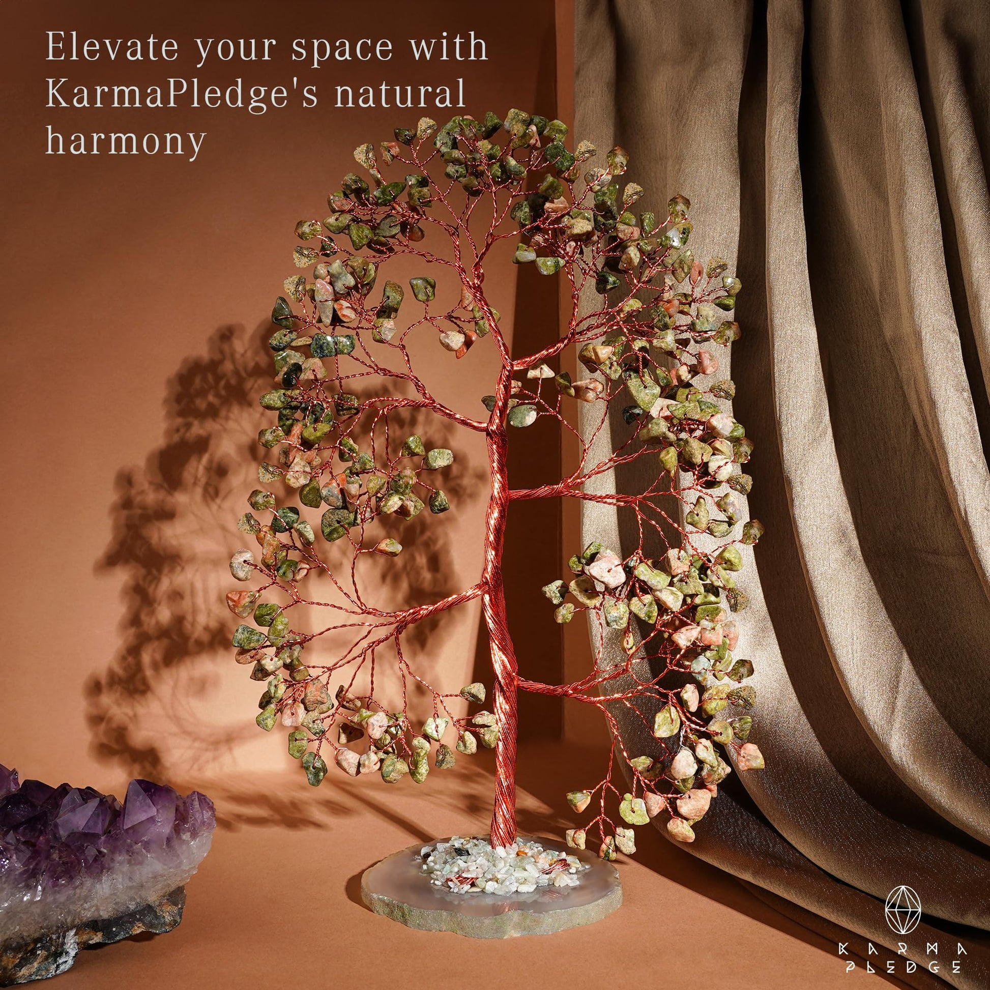 - CRYSTAL DECOR : This crystal tree is a stunning addition to any space, measuring between 25-27cm in height and weighing around 240-260 grams which features around 300 natural crystal beads. It serves as an eye-catching crystal decor piece for a desk, nightstand, or any other small area. As each crystal is naturally formed, there may be slight variations in size, color, texture, and other qualities that make every tree one-of-a-kind.