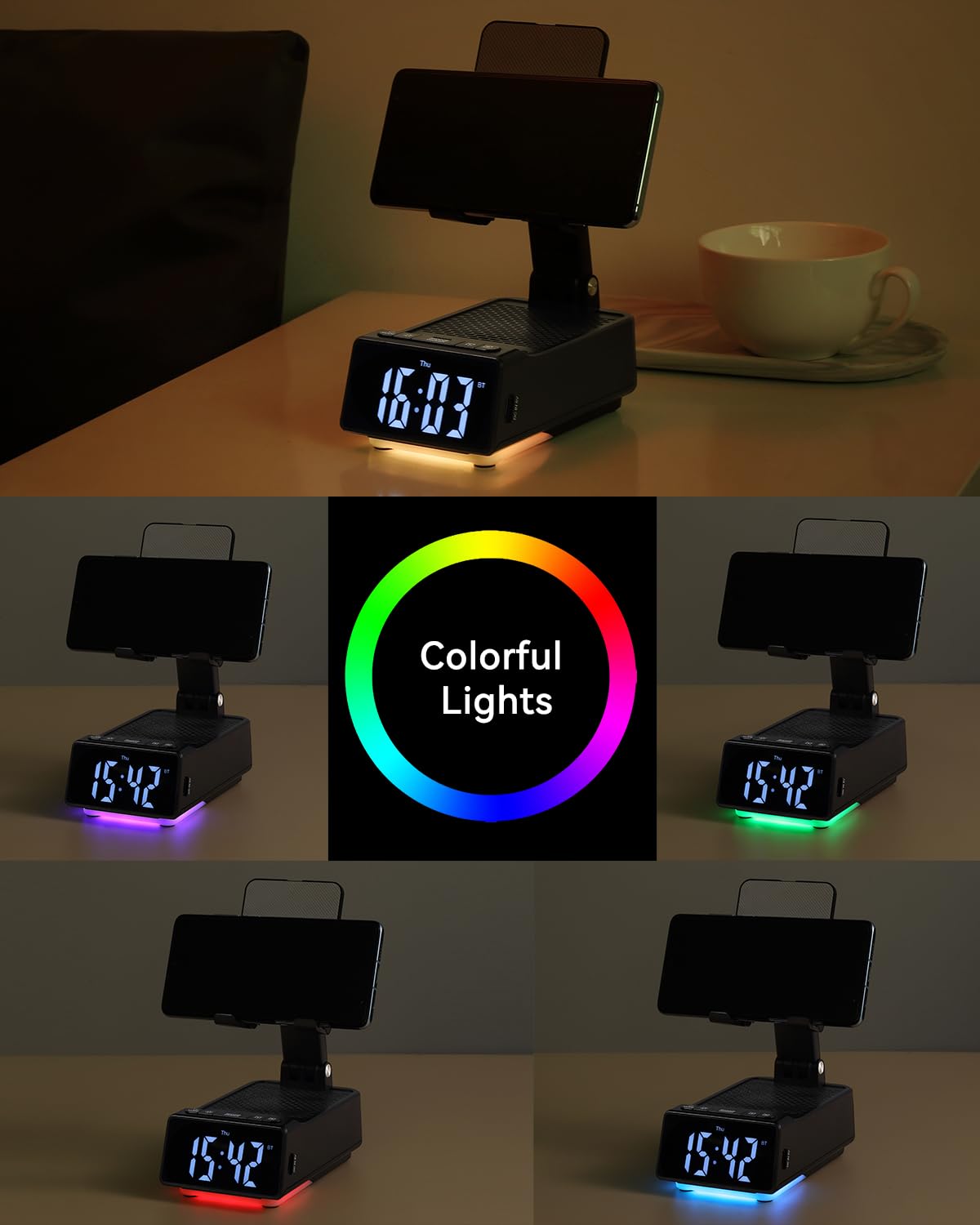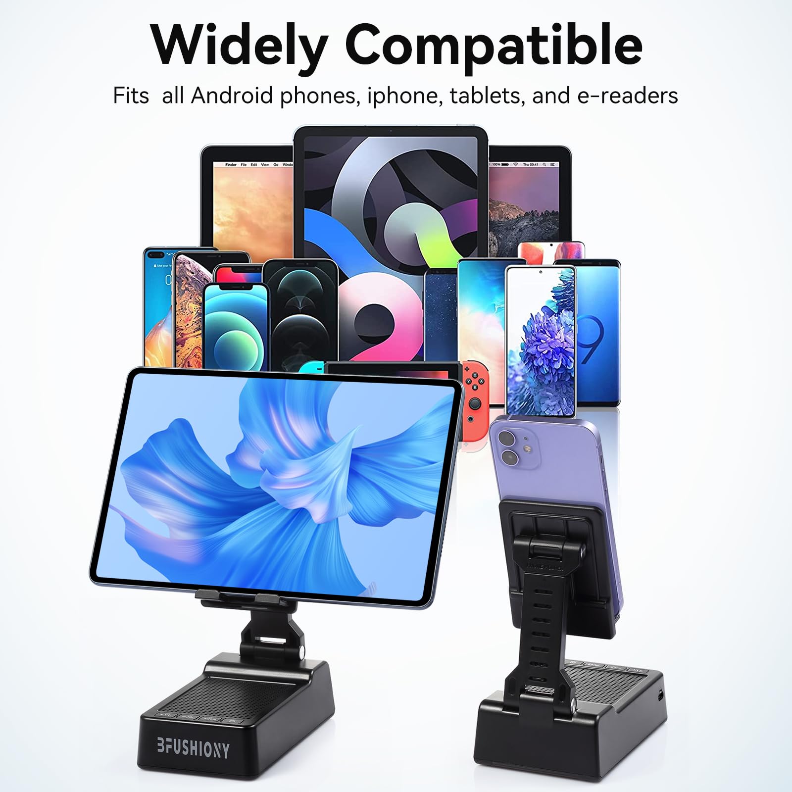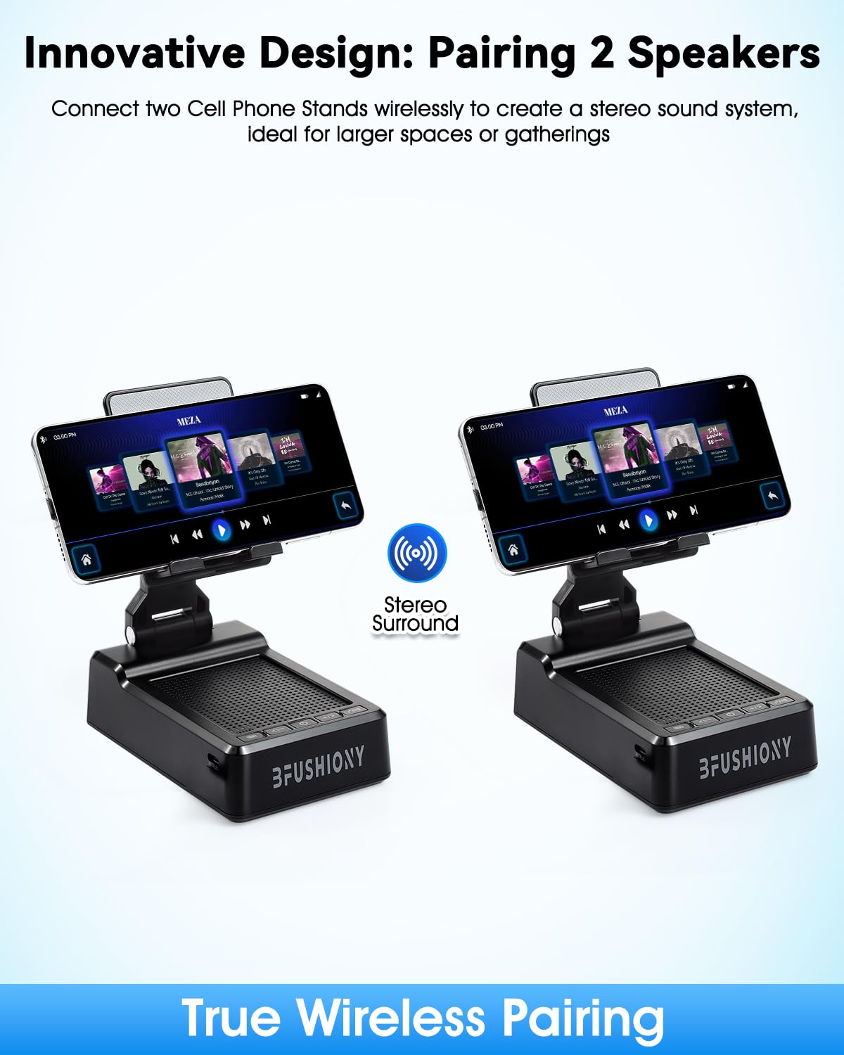 - New Function - Portable Charger: This cell phone stand with portable bluetooth speakers not only can listen to music and watch videos, you can also charge the phone or tablet. Playing up to 50 hours on a single charge at 50% volume, about 1000 3-min songs