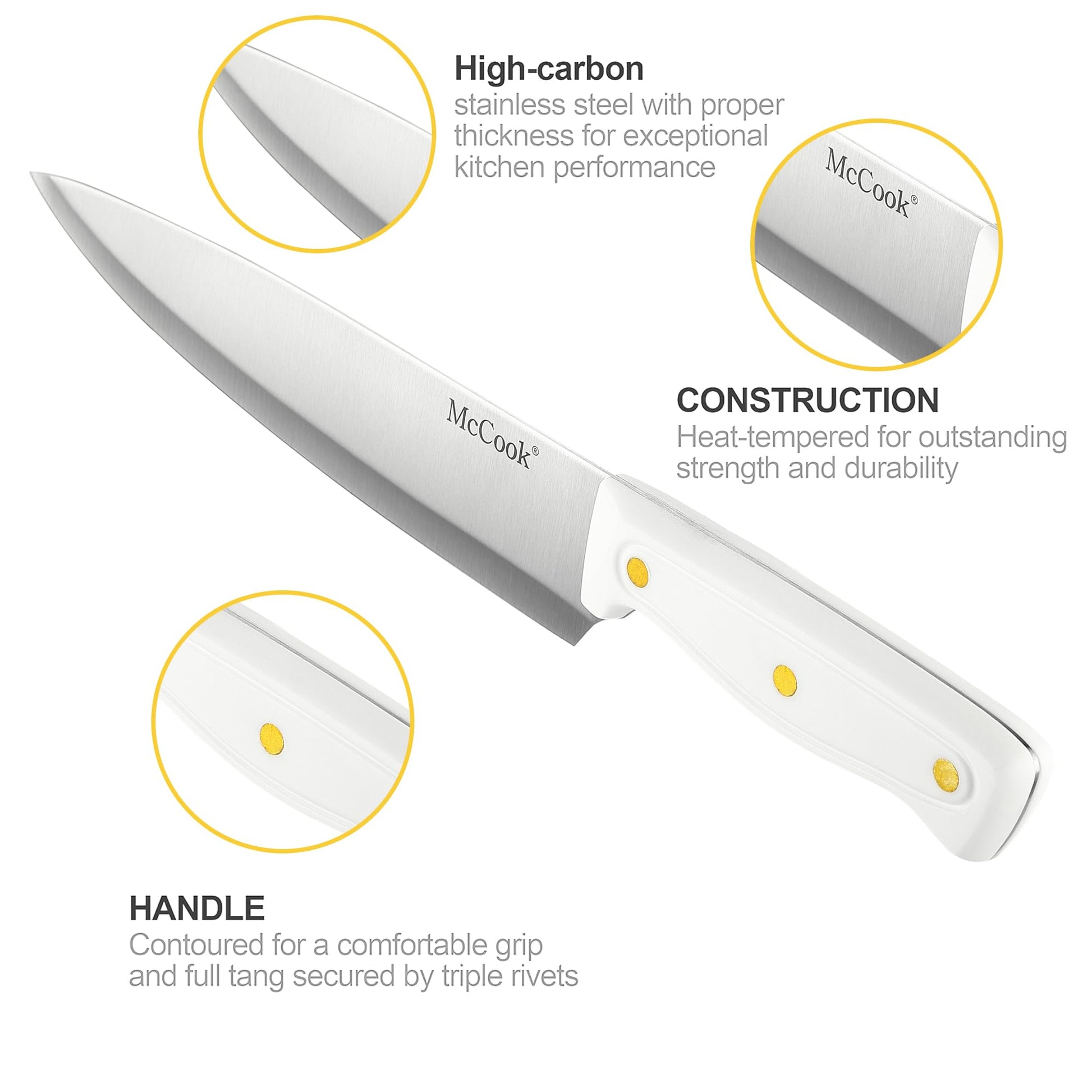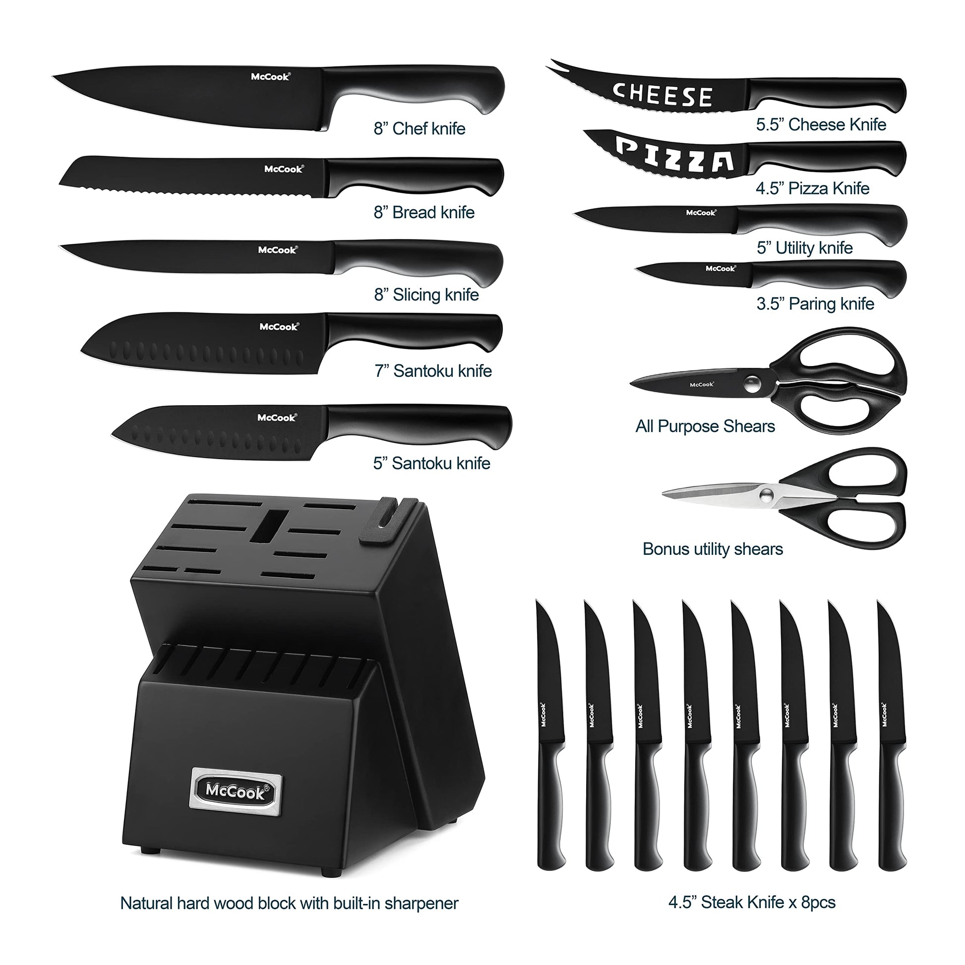 - 【Service】McCook knife sets for kitchen with block is easy and fast to use. A fantastic addition to your kitchen. Perfect for Valentine's Day, Wedding, Birthday, Housewarming, Thanksgiving, Halloween, Christmas.