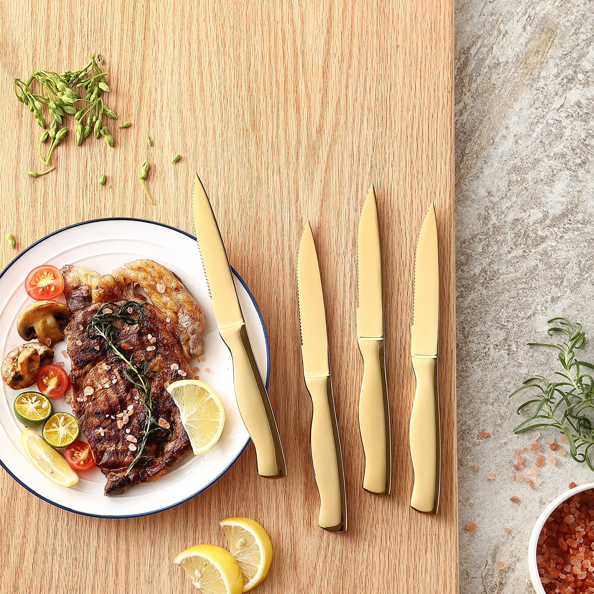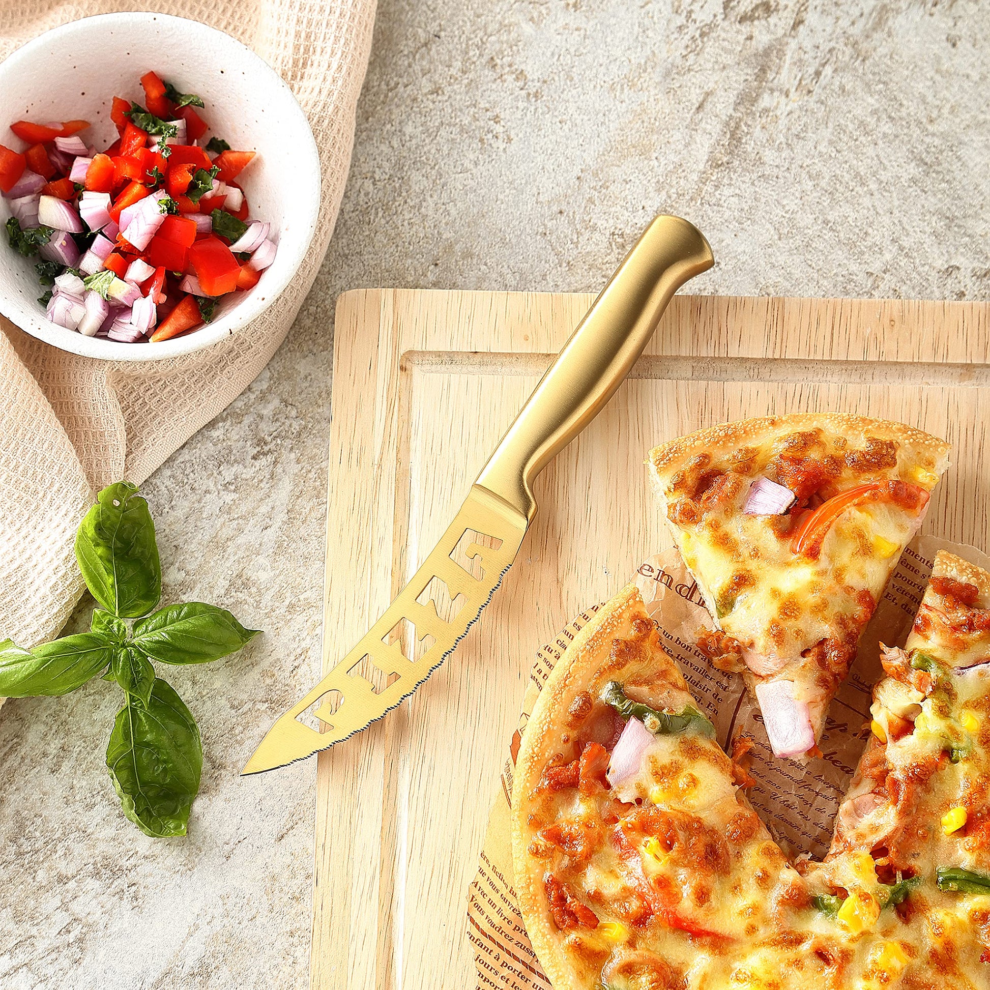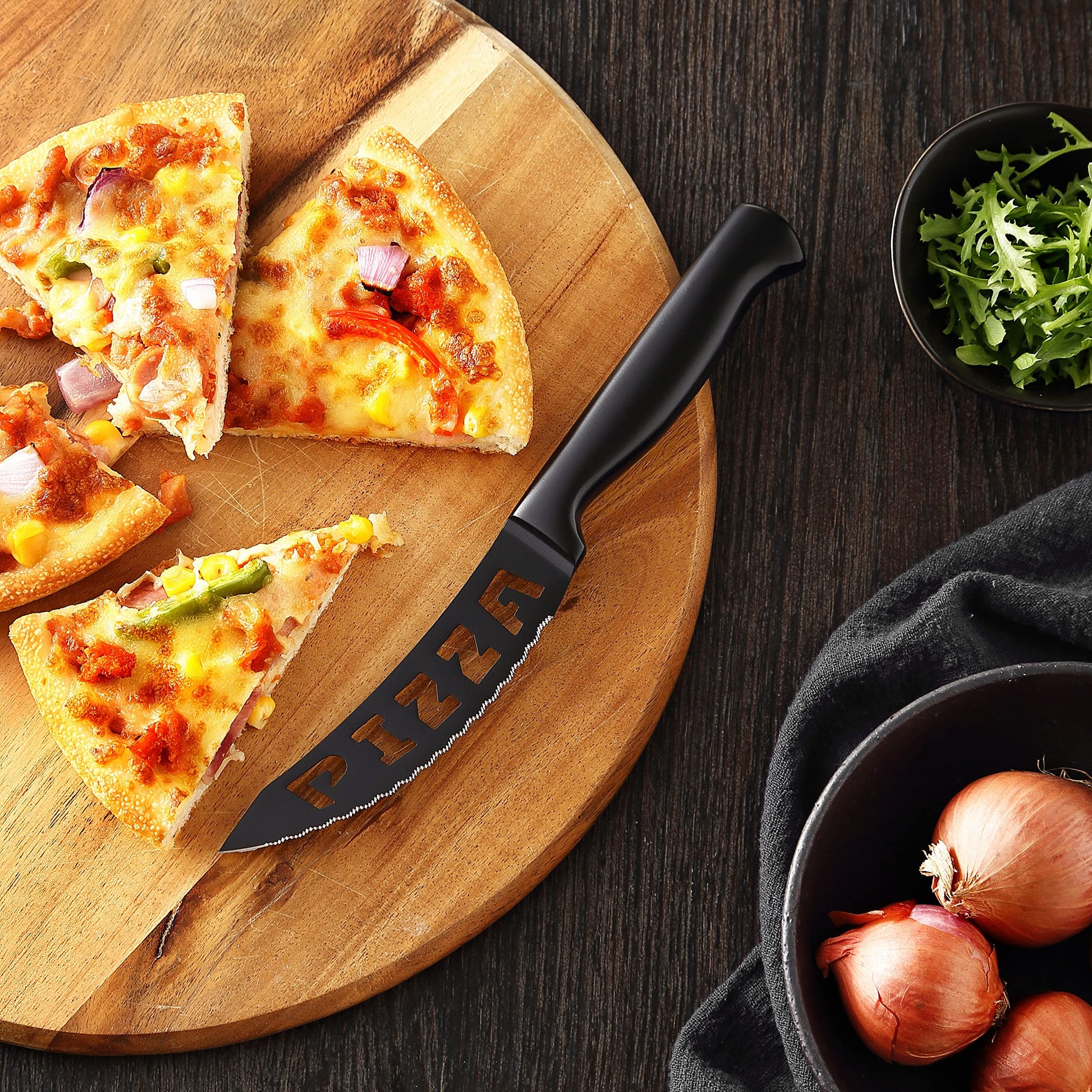 - 【Exclusive Built-in Sharpener】Kitchen knife set with sharpener is amazing. The self-sharpening block keeps the knives razor sharp effectively. It saves you from having to honing blades on a sharpening steel.
