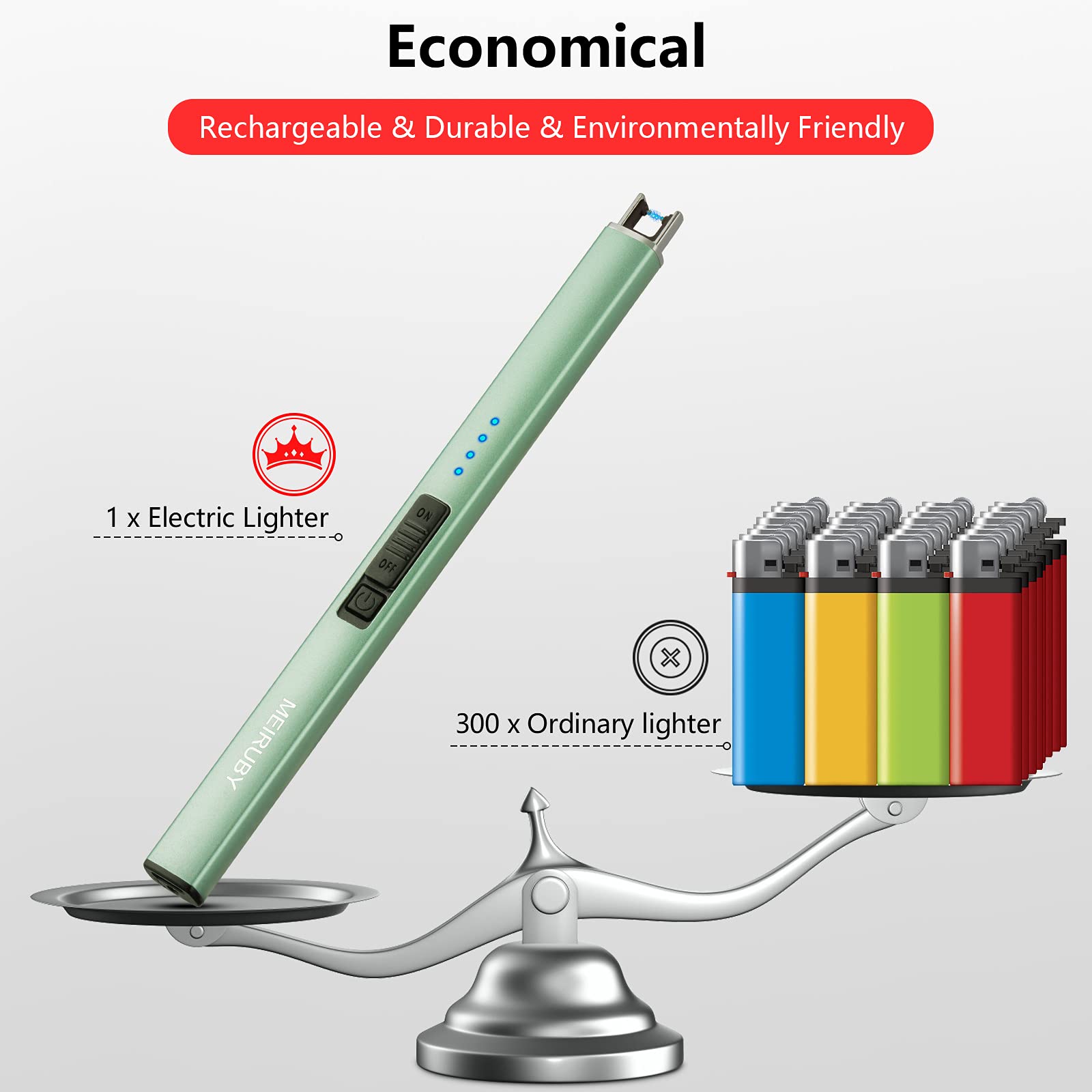 - Economical & Environmental Candle Lighter: One electric lighter, which is more economical and environmental,is equal to 300 traditional lighter.