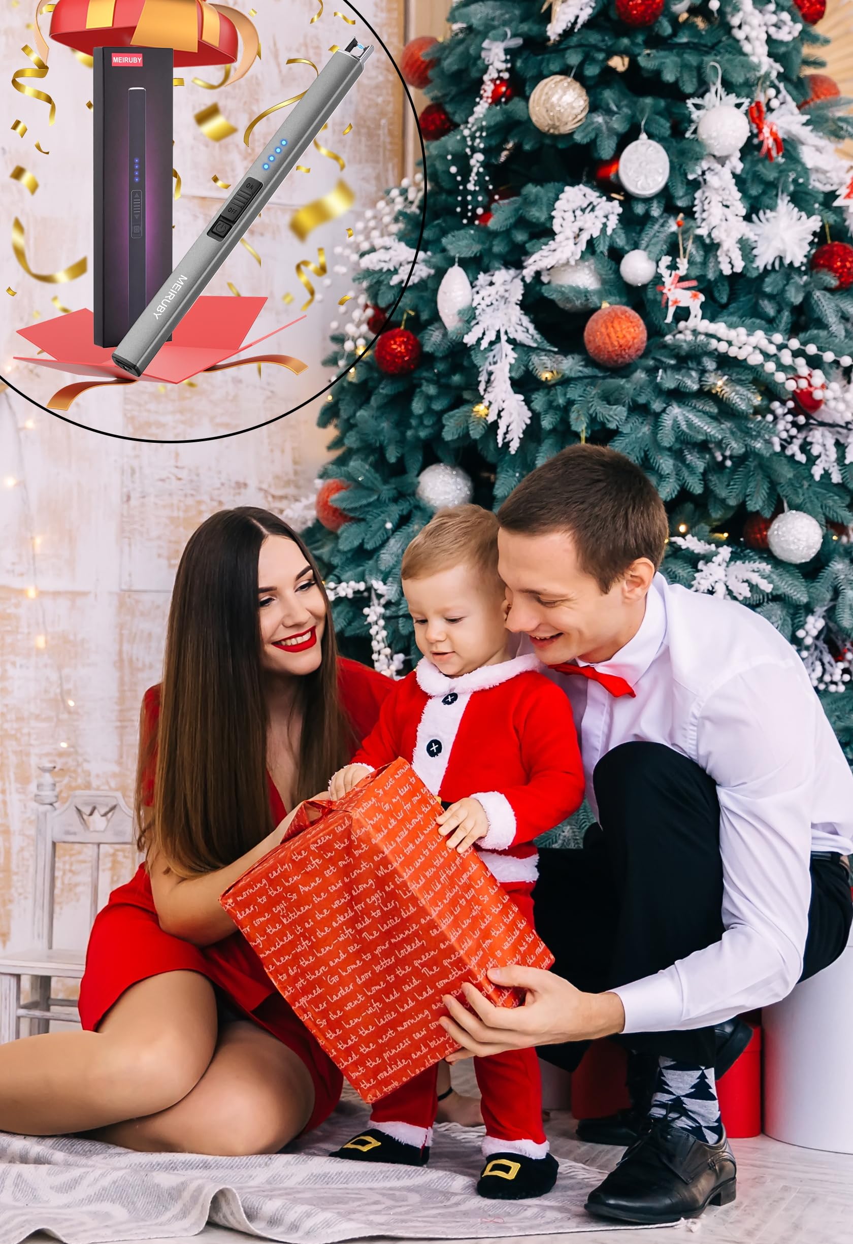 MEIRUBY Electric Candle Lighter, Christmas Stocking Stuffers Gifts for Women Mom Men Wife Sister, USB Arc Rechargeable Windproof Long Lighter for Candle BBQ Housewarming Birthday Gifts Idals