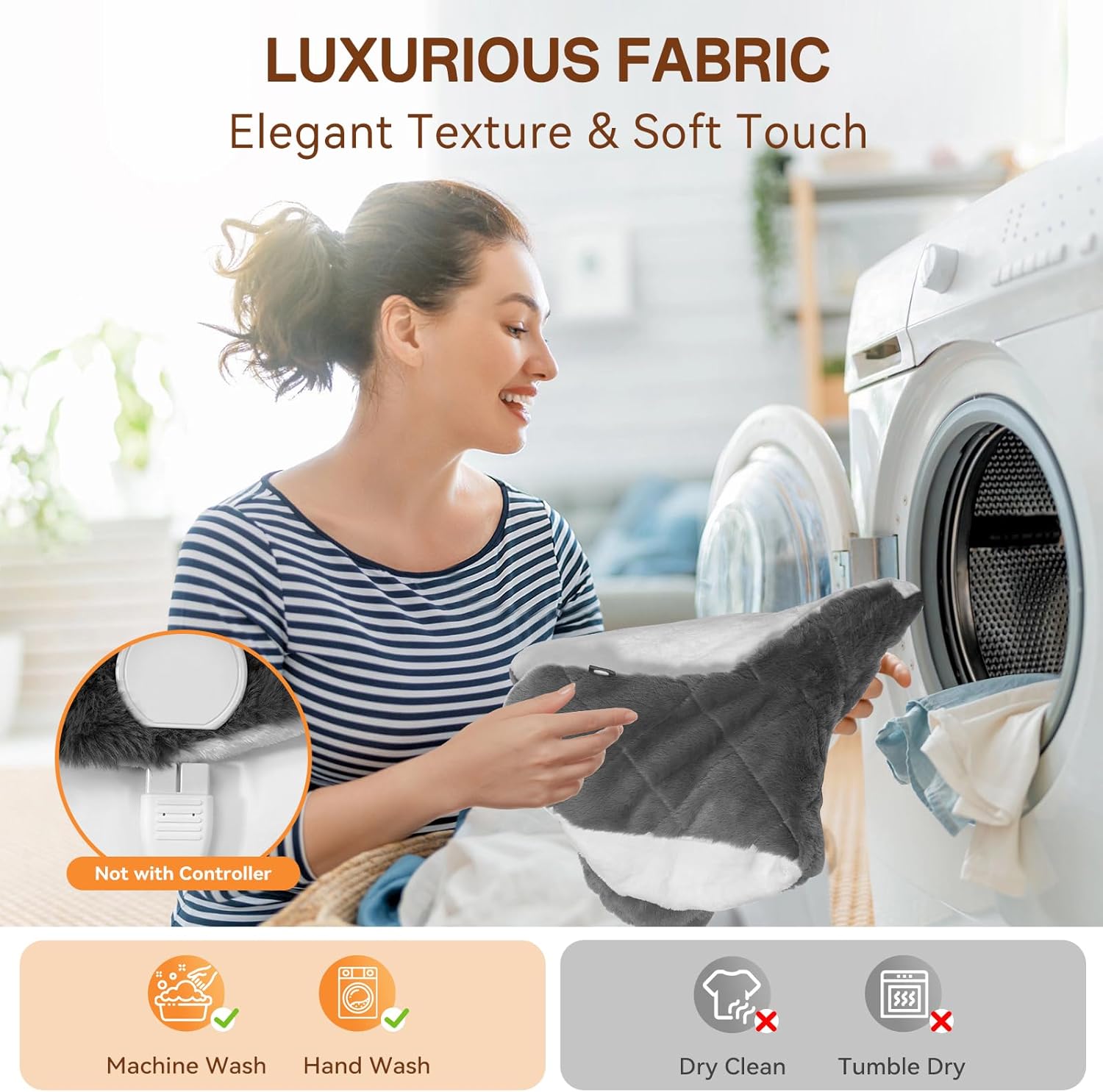 - Soft Fabric & Washable: The surface is made of luxurious imitation rabbit fur, and the inside is soft short-pile fabric. The elegant texture and soft touch bring you unparalleled comfort. The heating pad is easy to clean. It can be washed after removing the controller (note: not tumble dry). Always keep it clean and fresh