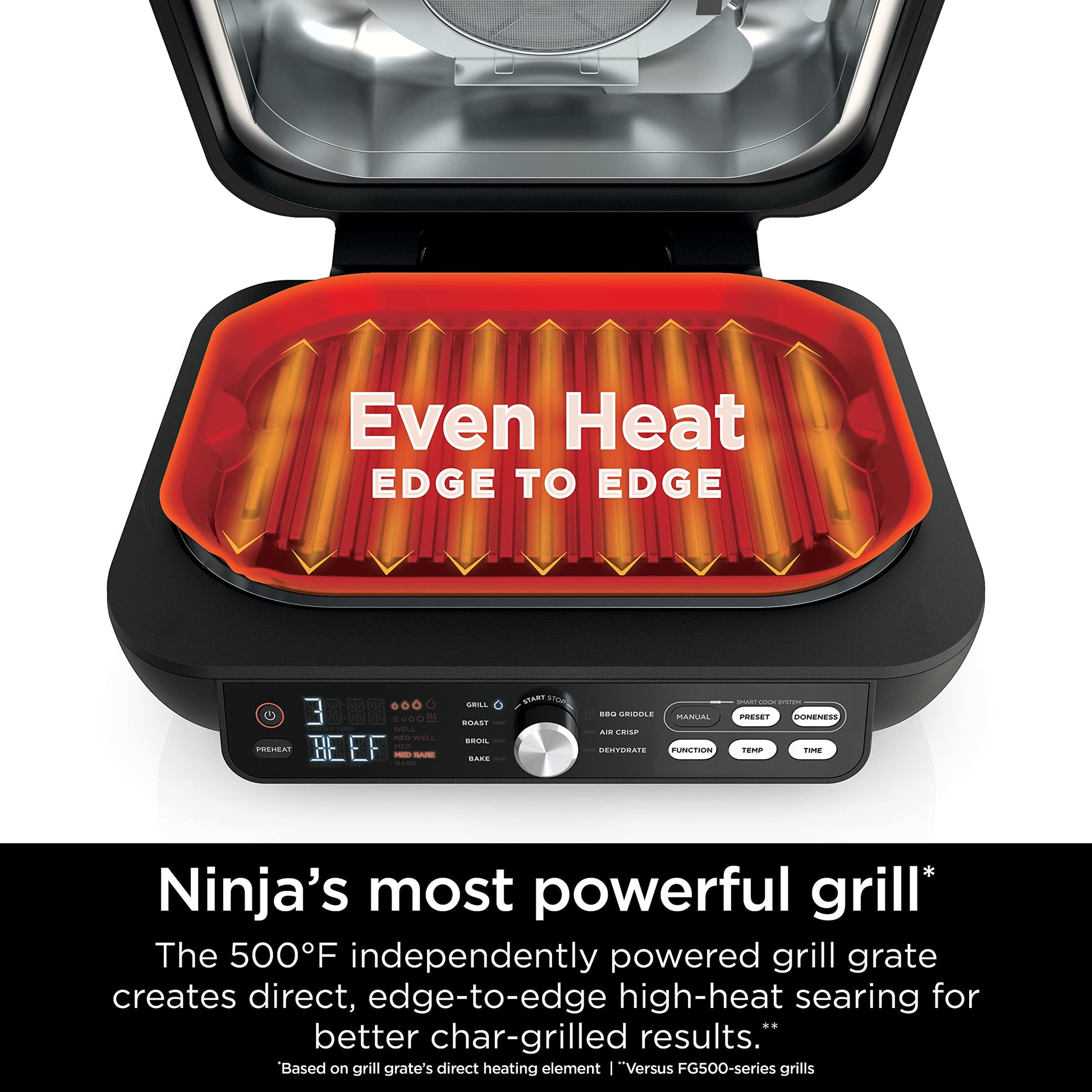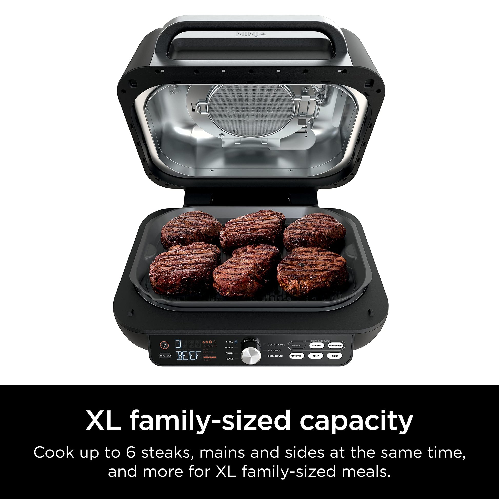 Ninja FG551 Foodi Smart XL 6-in-1 Indoor Grill with Air Fry, Roast, Bake, Broil & Dehydrate, Smart Thermometer, Black/Silver OPEN BOX