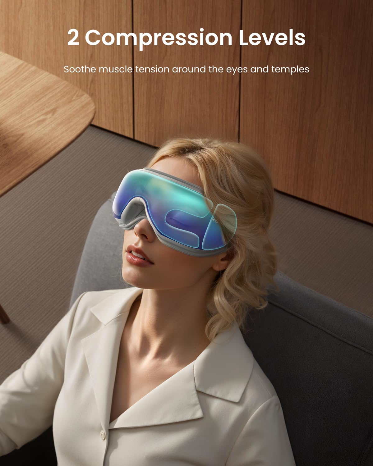 - 2 Levels Soothing Heat Compress: The built-in heating pads provide a comfortable temperature of 104β/113β (40β/45β ), better for relieving eye strain, eye puffiness, dry eyes, improve sleep, etc. Our eye massager for migraine can effectively help you be refreshed after a long day of work or study