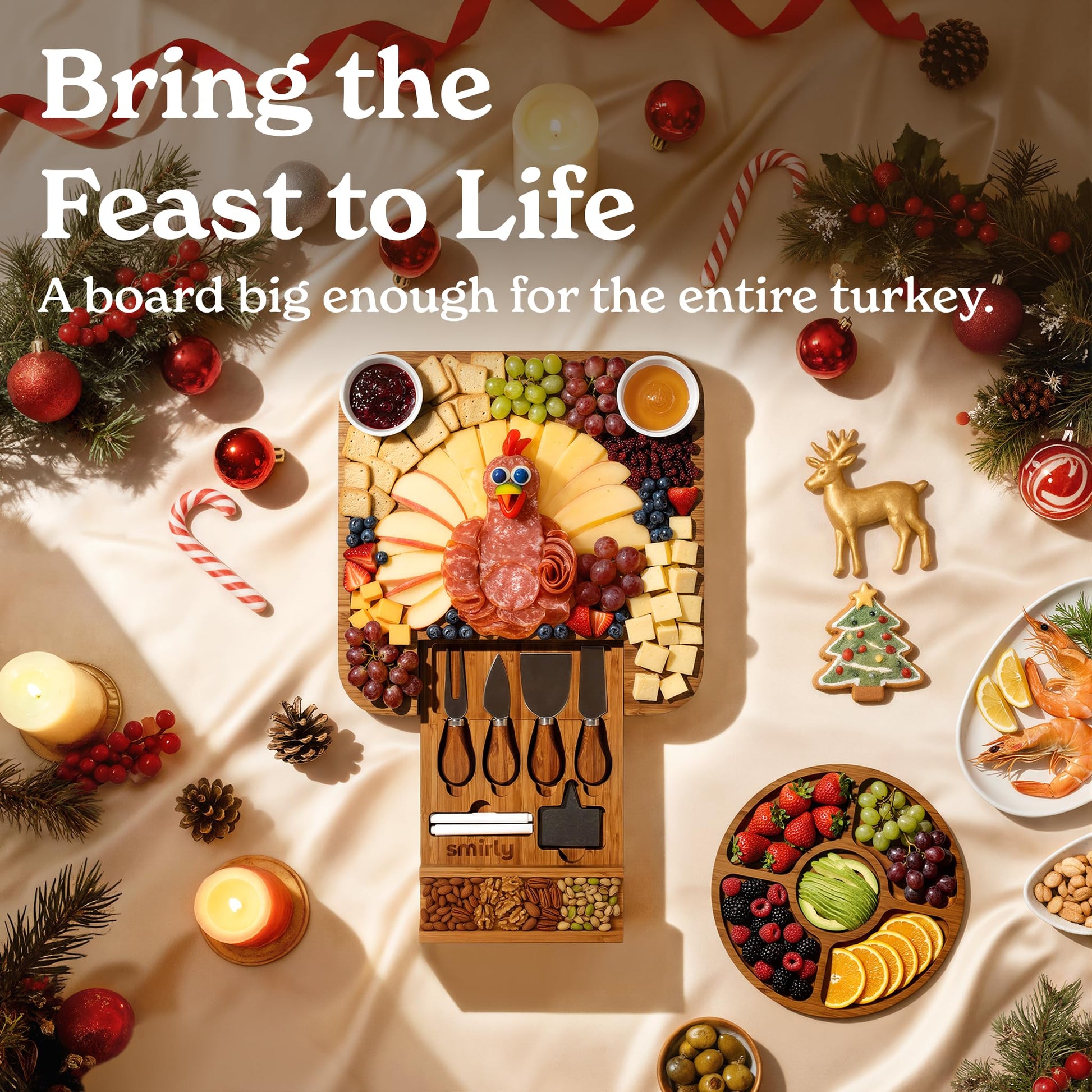 Smirly Charcuterie Board Set - Large Bamboo Cheese Board for Serving - House Warming Gifts New Home, Wedding & Bridal Shower Gift, Birthday Gift for Women