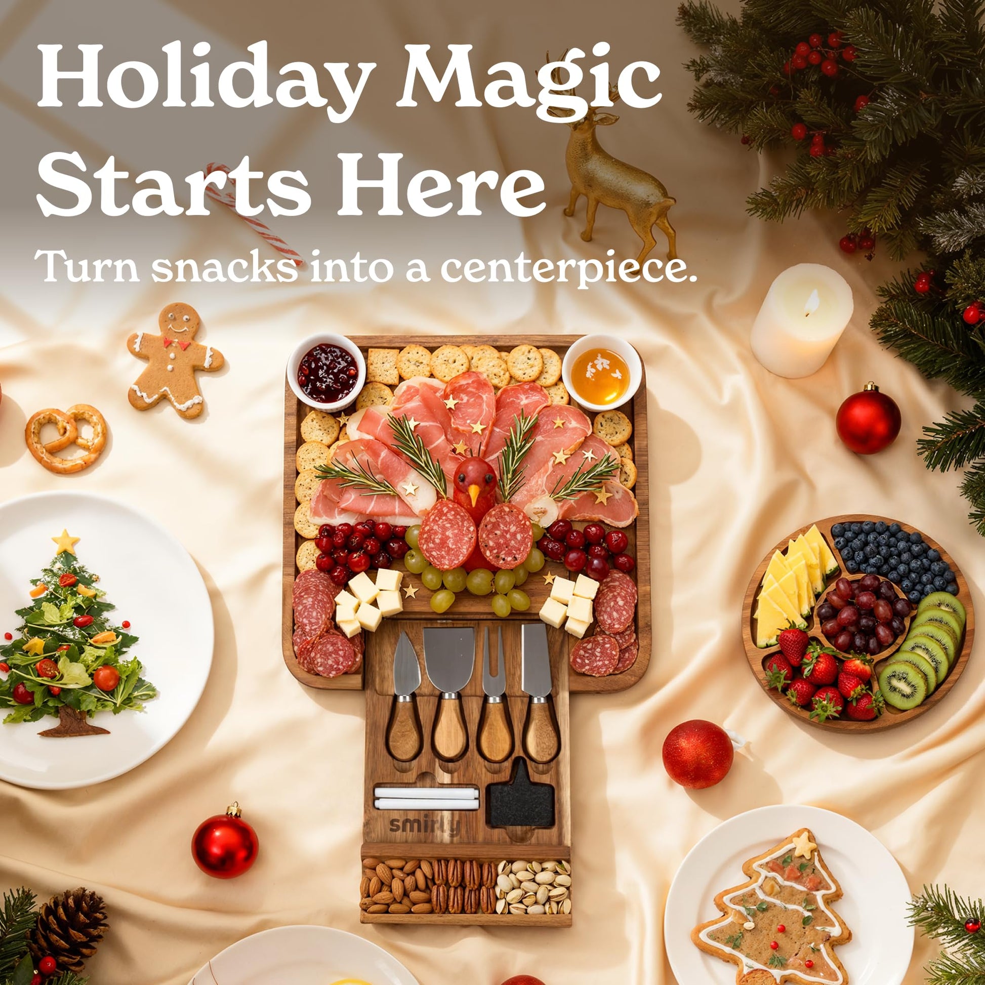 - Party Like a Pro - Impress guests with SMIRLY's wood cheese board and charcuterie tray. Designed for easy entertaining, it perfectly displays a variety of delicious treats, including meats, cheeses, crackers, veggies, and fruits.