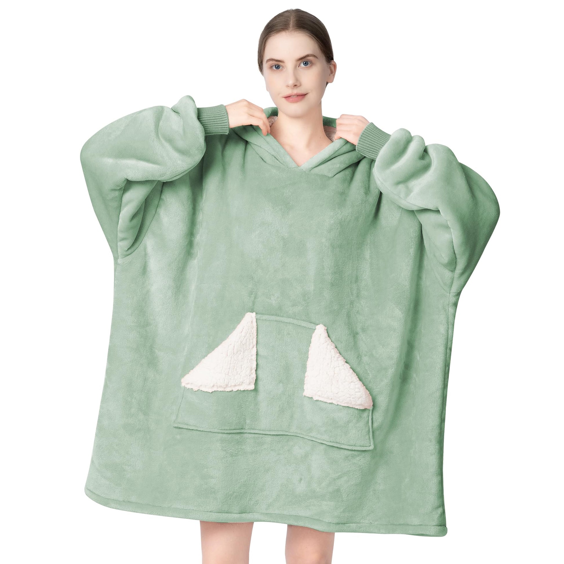 Touchat Wearable Blanket Hoodie, Oversized Sherpa Fleece Sweatshirt Blanket with Giant Hood Pocket and Sleeves for Adult, Warm & Cozy Grey Blanket Gifts for Women