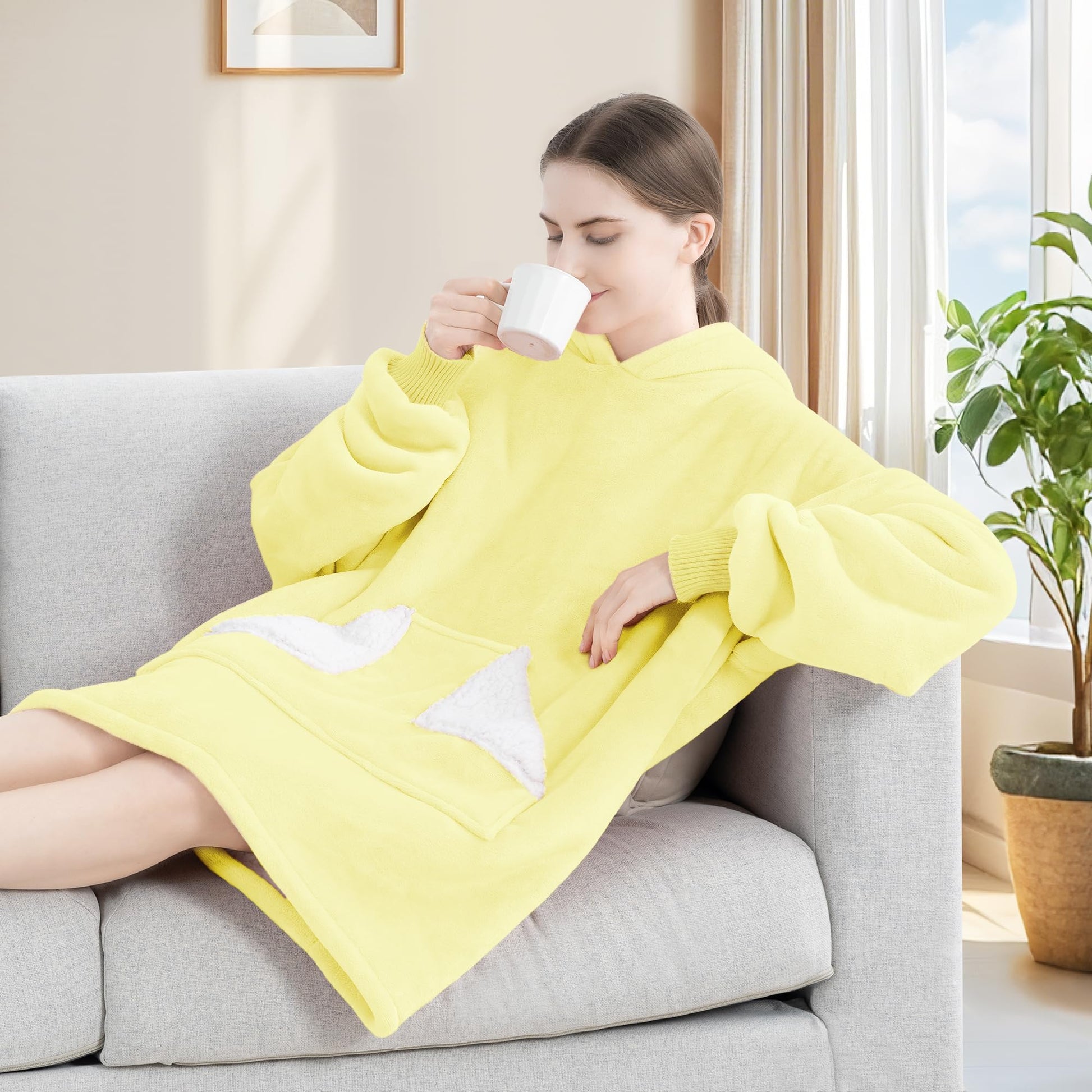 - One Size Fits All: The oversized blanket sweatshirt is perfect for people of most shapes and sizes, sitting on the sofa, bed, movie theater, park, beach or any other occasion; No impact on your walking, working or entertainment experience, even your pets will also envy you for the top feeling of wearing the blanket as well
