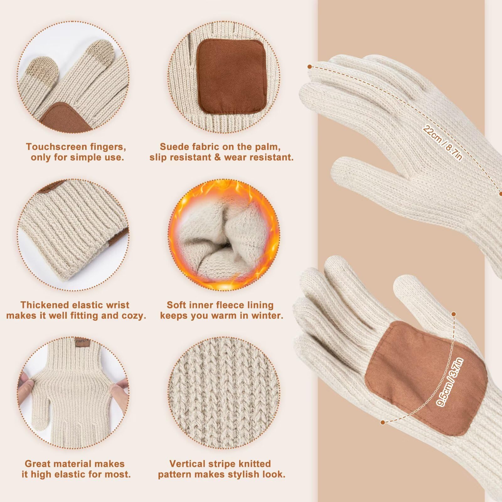 Winter Beanie Hat Scarf Gloves Set for Women, Womens Beanie with Pom Pom Long Scarf Neck Warmer Touchscreen Gloves 3 in 1 Set